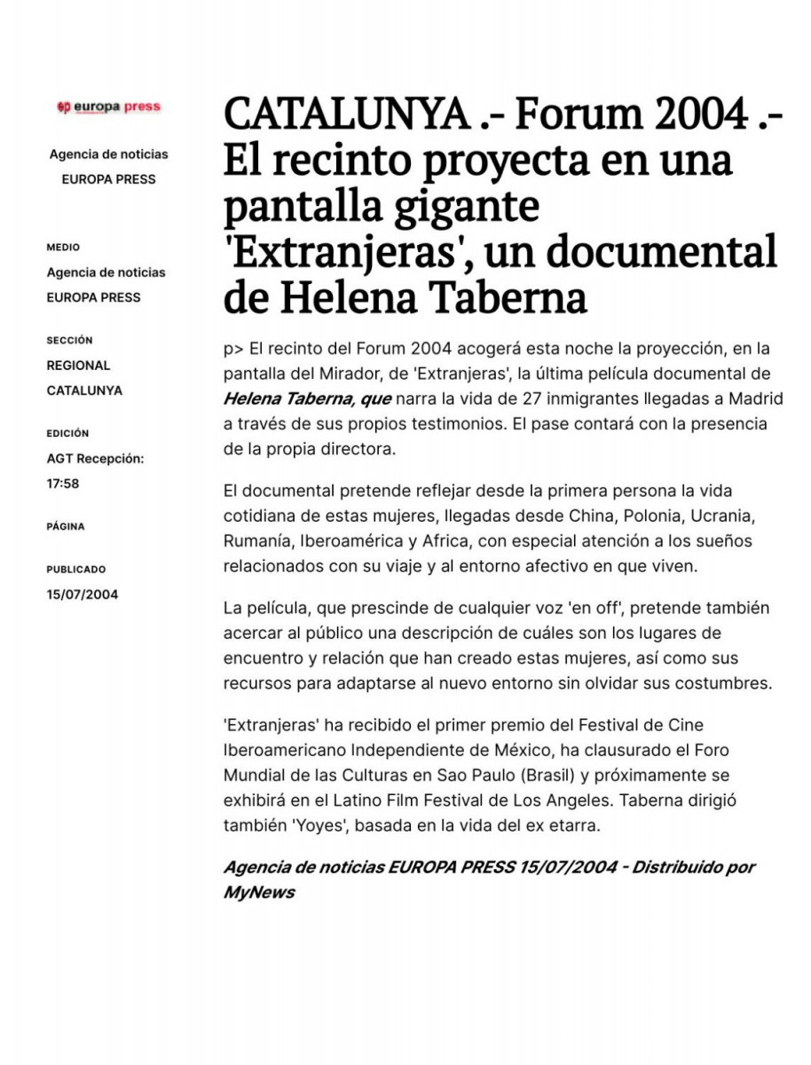 Festivales y congresos de Extranjeras: Honolulu (inauguración), Sao Paulo, Costa Rica