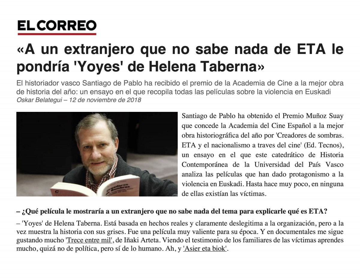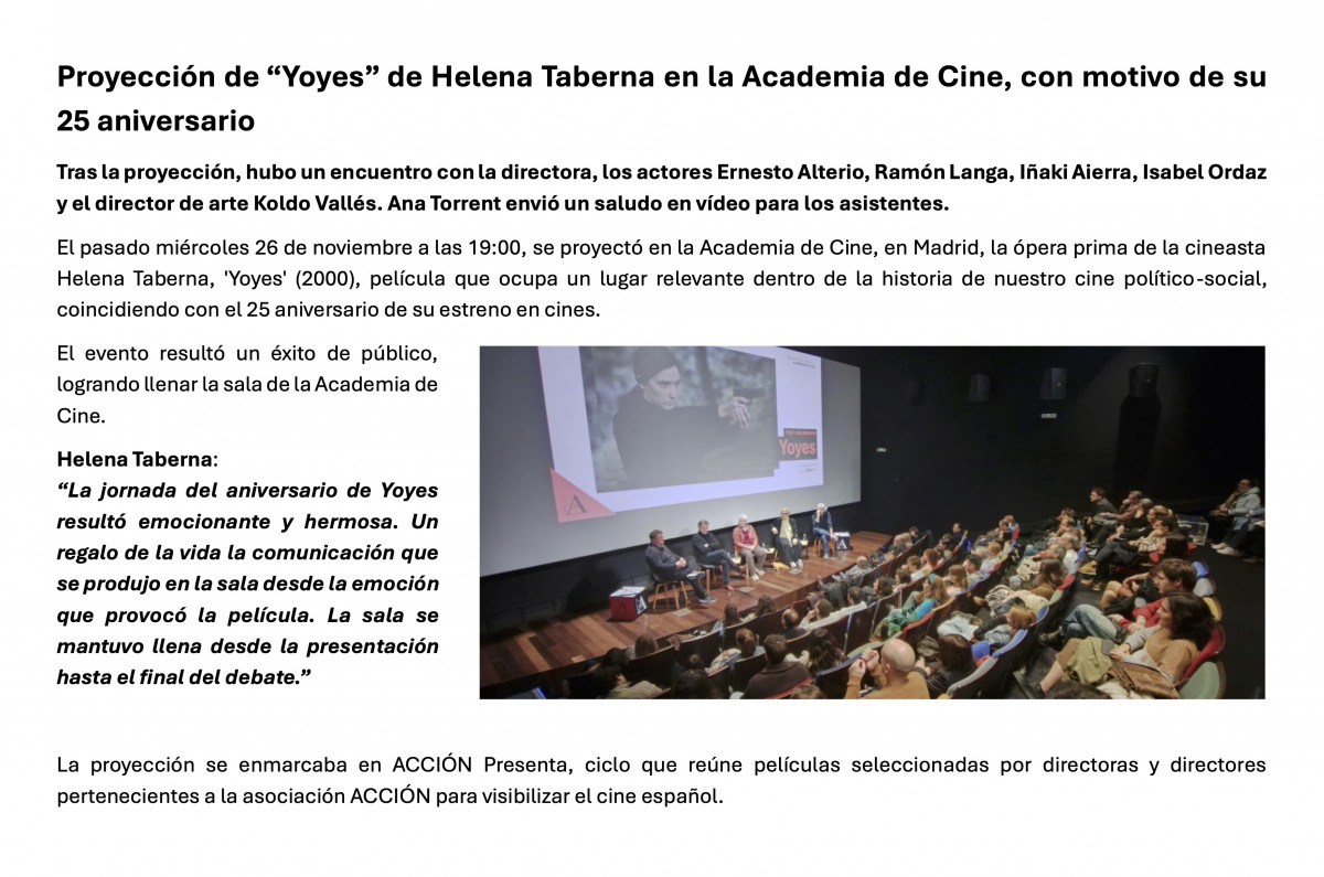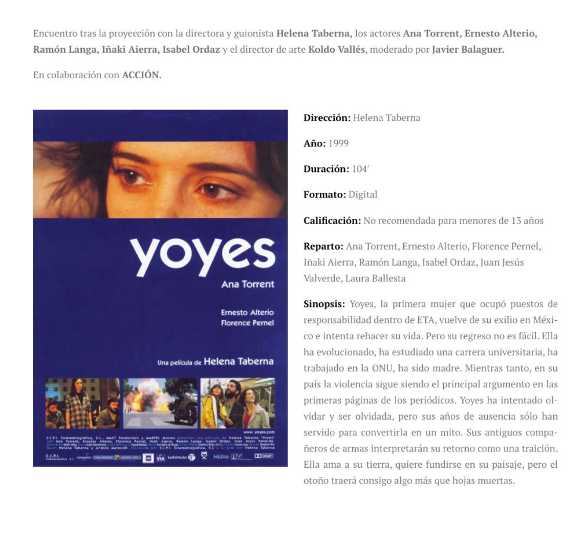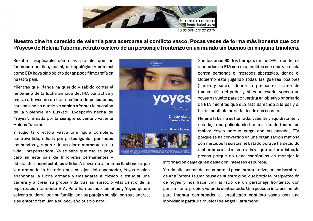 YOYES – 25 ANIVERSARIO (2000 – 2025) YOYES – PRENSA Historia de nuestro cine: Yoyes, de Helena Taberna EITB Estreno de Yoyes en La Noche De…